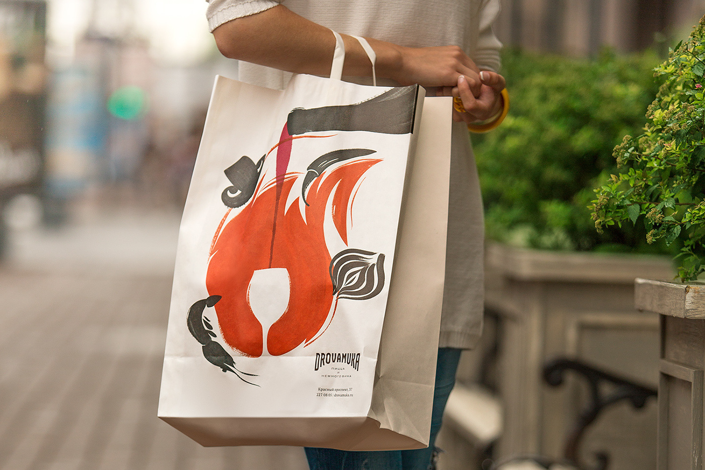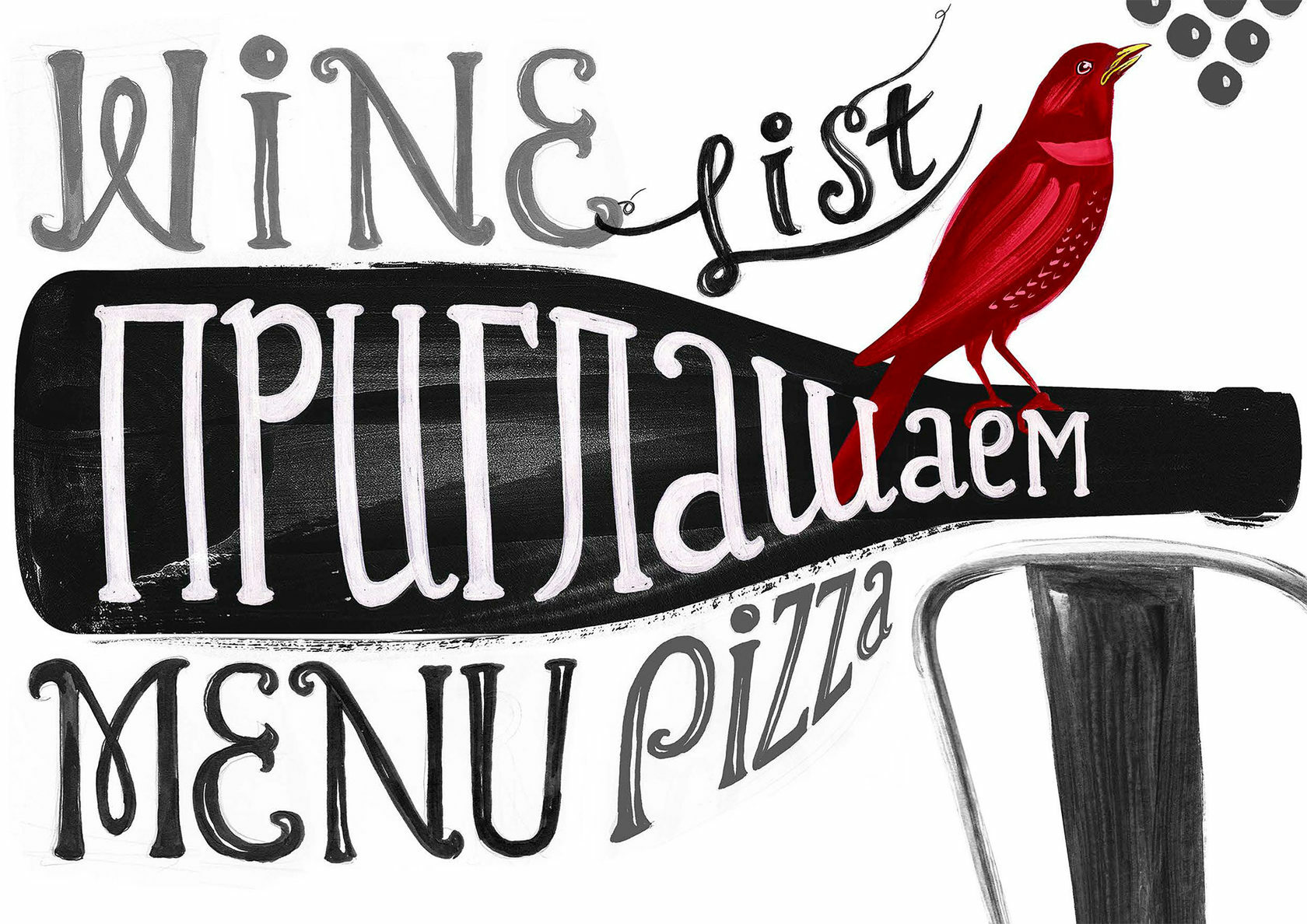 отсюда был взят принцип построения букв по форме эллипса. Учитывая интерьер и направленность заведения, в айдентике используется много handmade графики. В процессе создания элементов айдентики, было израсходовано много акриловой краски и итальянской бумаги. Создана серия живописных знаков-идентификаторов, которые используются как в связке с логотипом, так и по-отдельности. Логотип, знаки и стиль передают и усиливают философию заведения.